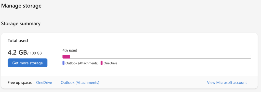 まず確認すべきは、どのデータが容量を消費しているのかという点です。OneDriveのWebサイトにサインインし、「ストレージ」ページを開くと、使用容量の内訳を確認できます。