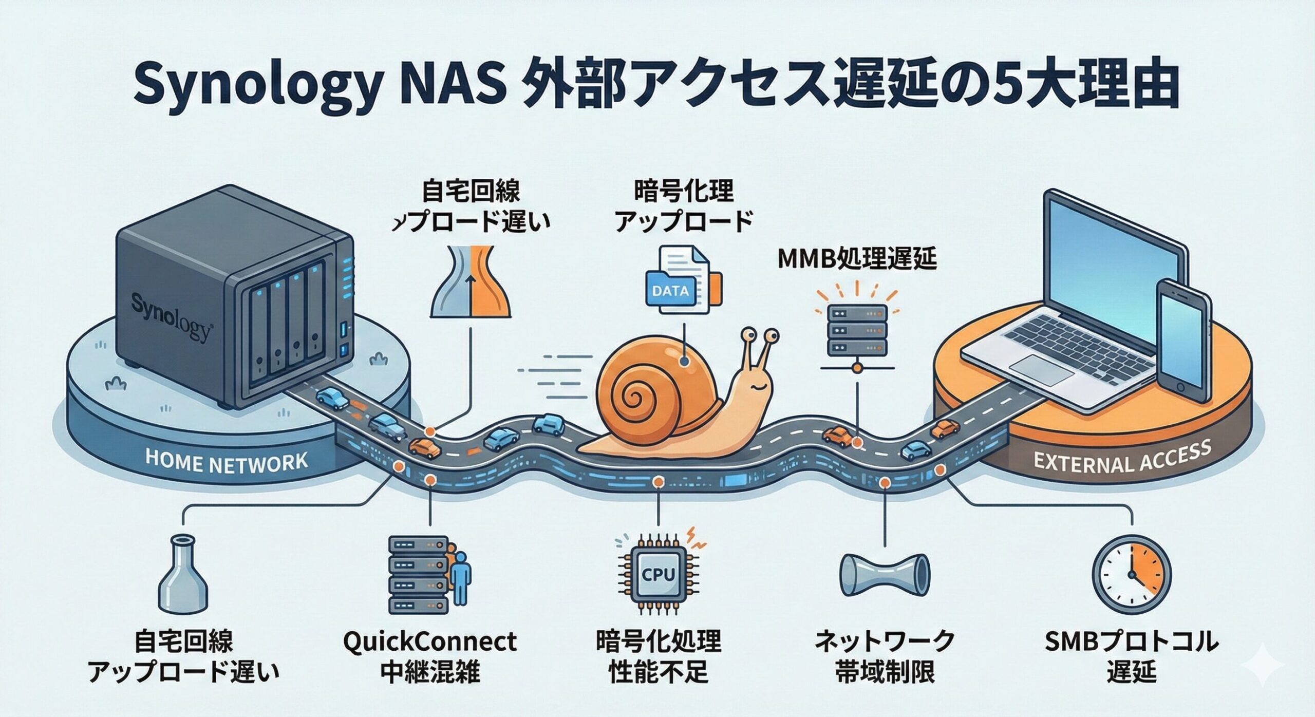 今回は、Synology製NASへの外部アクセスが遅い5つの理由をわかりやすく解説します。