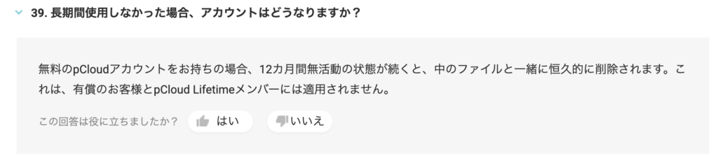 pCloud公式Q&A 39. 長期間使用しなかった場合、アカウントはどうなりますか?