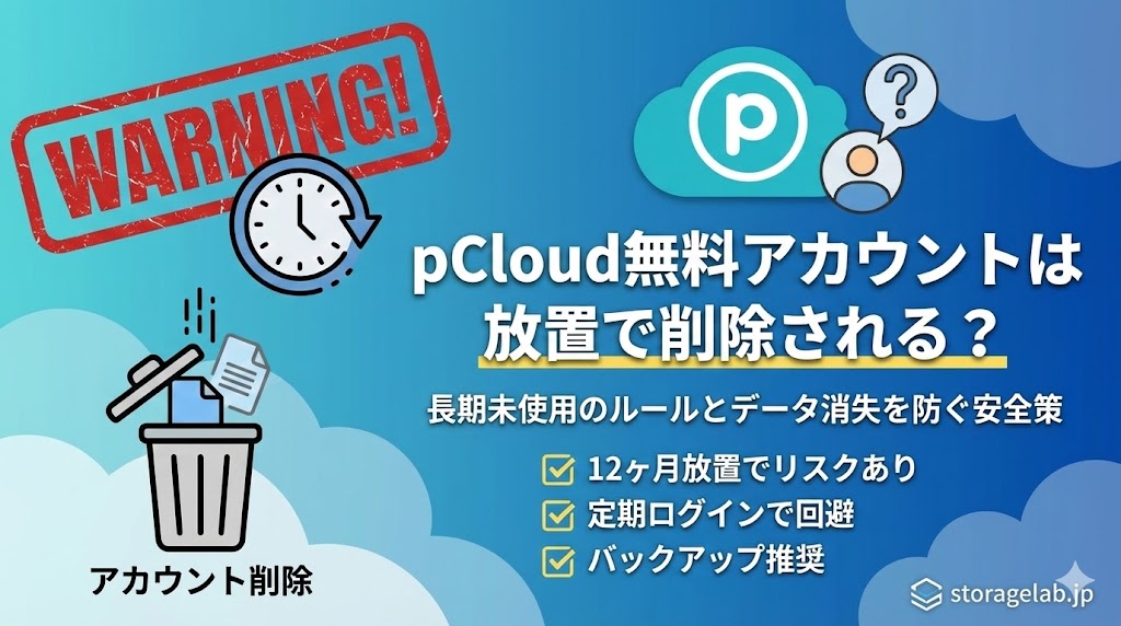pCloudには無料アカウント向けの長期未使用ルールがあり、一定期間ログインや利用実績がないと、アカウント整理の対象になることがあります。