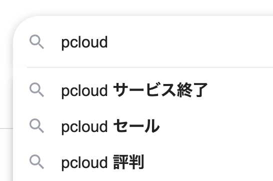 「pCloud 買い切り」と検索しようとすると、サジェストに不穏な言葉が出てきてドキッとしたことはありませんか?
