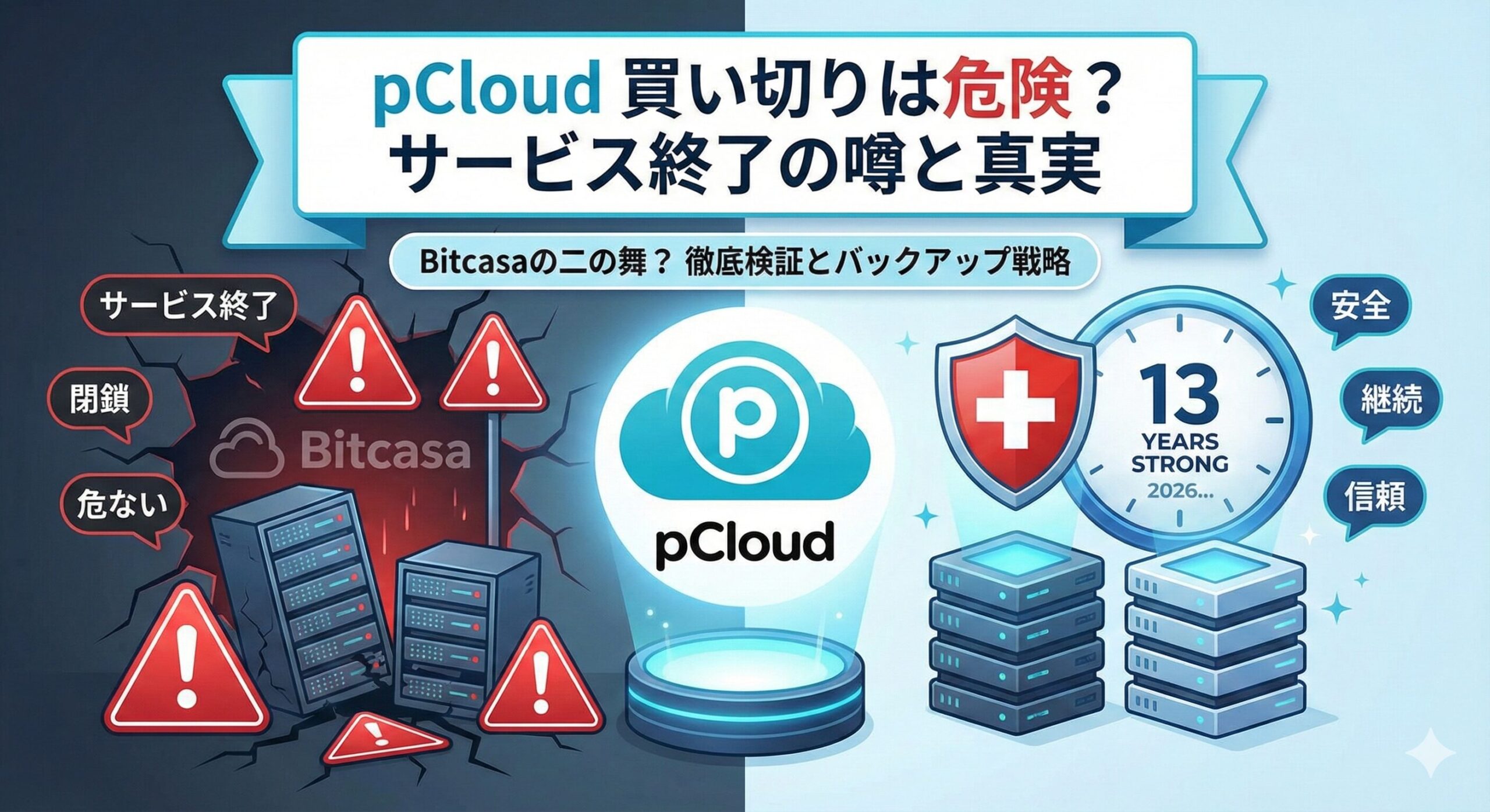 今回は、過去のクラウドストレージ終了の事例を分析しつつ、pCloudの現在の安全性について解説します。さらに、万が一のpCloudサービス終了になる時に備えて、pCloudユーザーが取るべき対策について解説します。