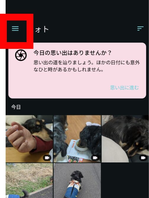 2.画面左上のメニューアイコン(三本線)をタップします。