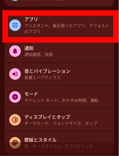 1.Androidの設定アプリを開きます。