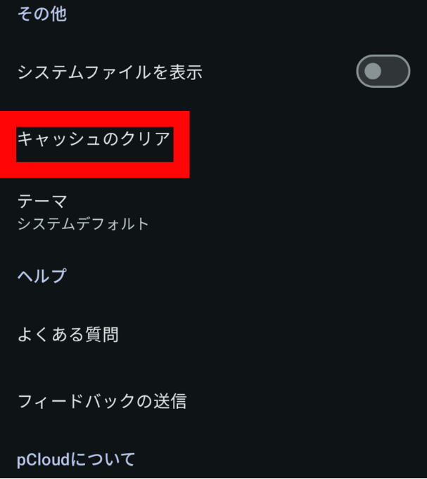 A. pCloudアプリ内からキャッシュを削除する