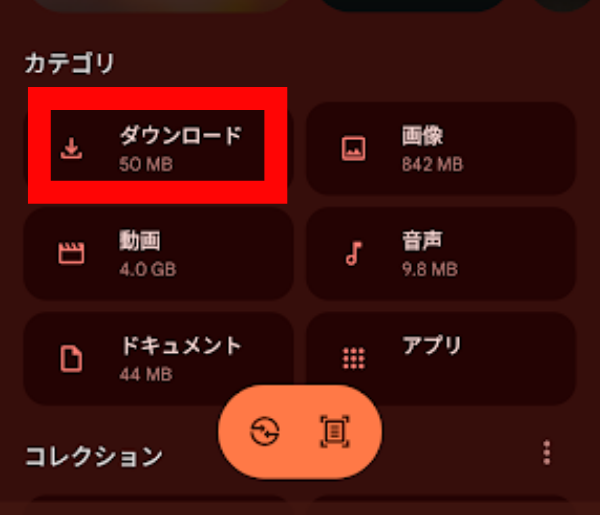 機種やAndroidバージョンによっては、ダウンロードフォルダに保存されることもあります。