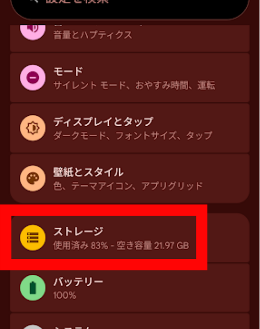 2.「ストレージ」をタップします。