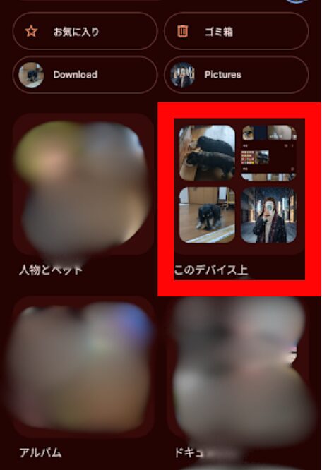 3.「このデバイス上」をタップします。