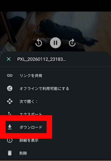 動画も、写真と同じ手順でダウンロードできます。
