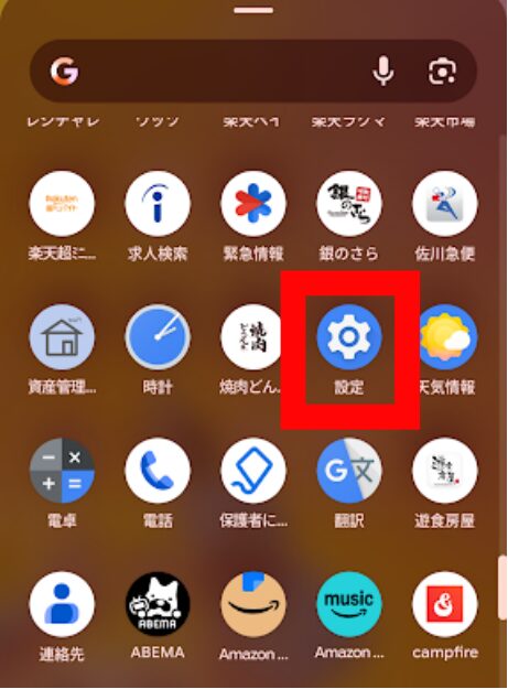 1.Androidの設定アプリを開きます。