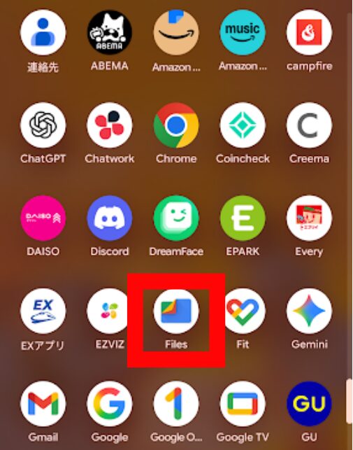 Googlepixelの場合は、メニューから「Files」をタップします。