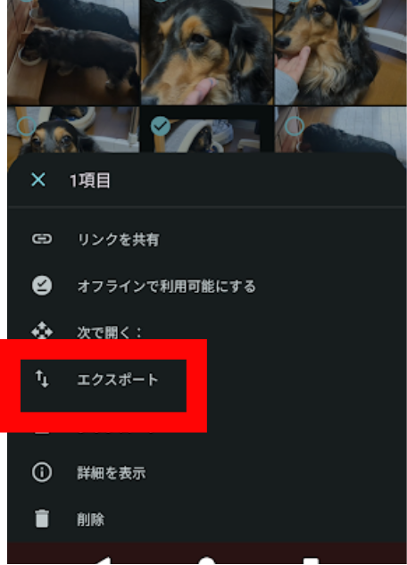 3.「エクスポート」をタップします。