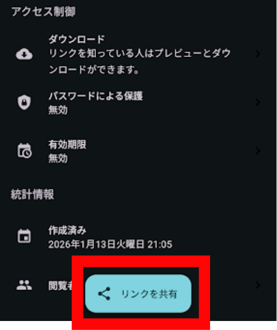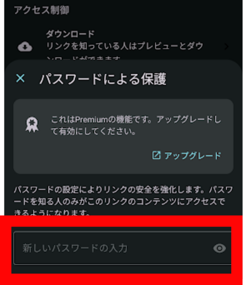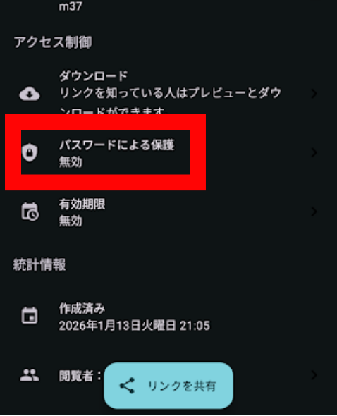 共有リンクにパスワードを設定