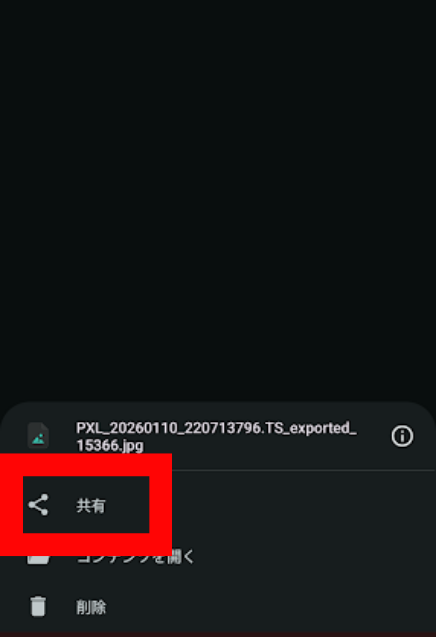 - 一度ダウンロードしてから、ギャラリーやファイルアプリから送る