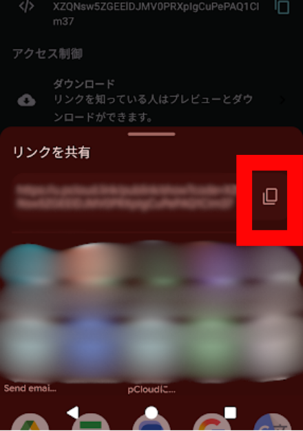 - pCloudの共有リンクを作成して、URLを送る