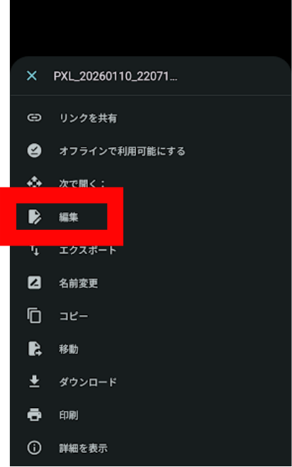 写真編集アプリで開く例