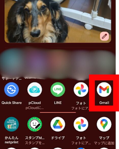 4.共有メニューから「Gmail」または「メール」を選択します。