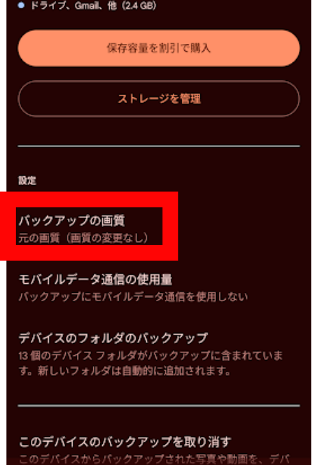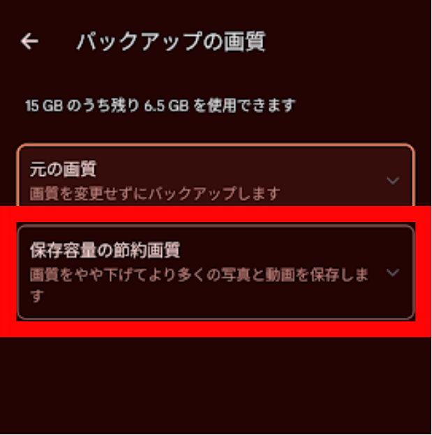 「元の画質」で保存している写真を、「保存容量の節約画質」に変更すると、容量を大幅に削減できます。