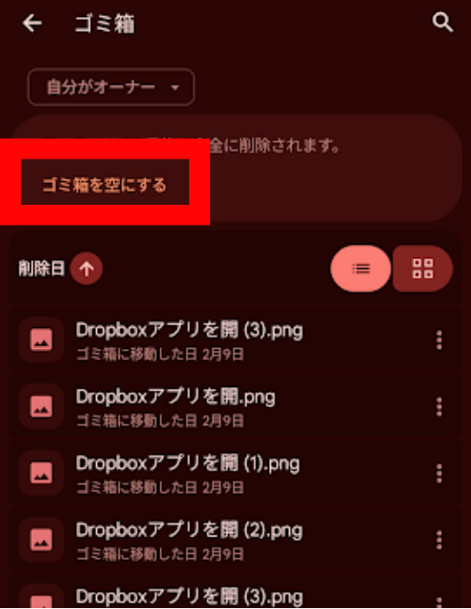 2. 「今すぐゴミ箱を空にする」をタップします。