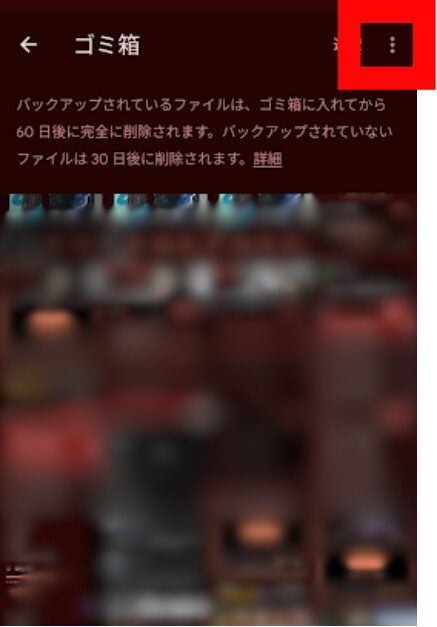 1. Gmailアプリの「≡」→「ゴミ箱」をタップします。