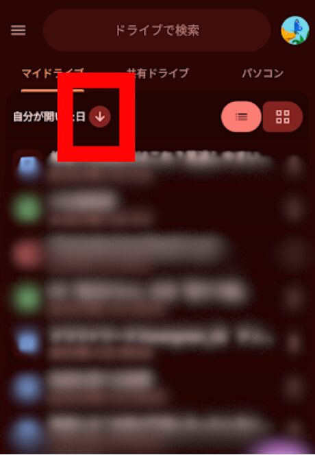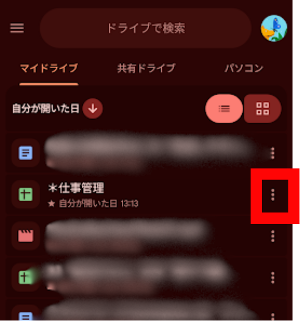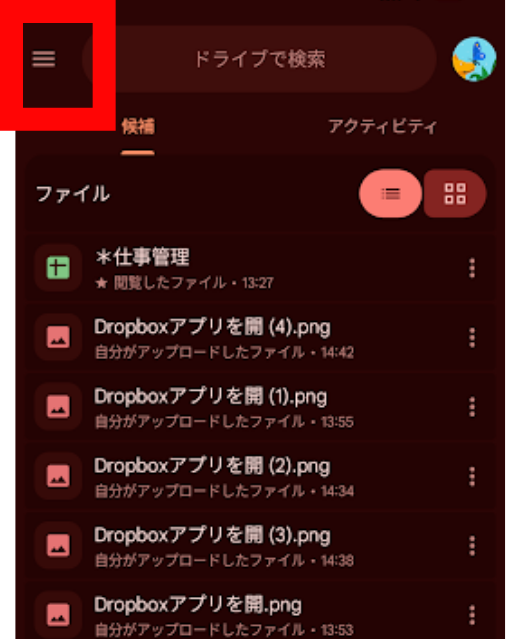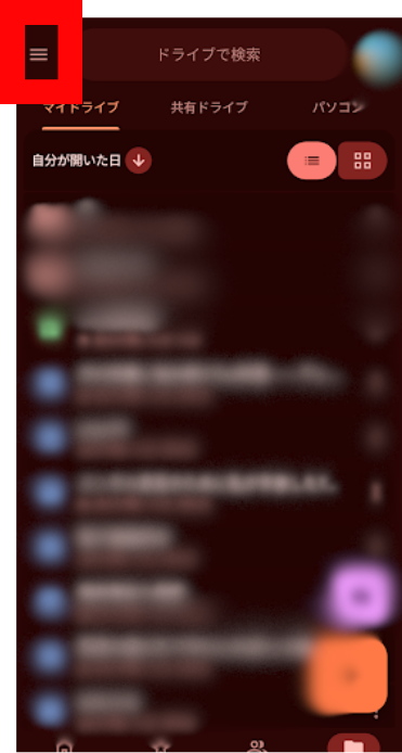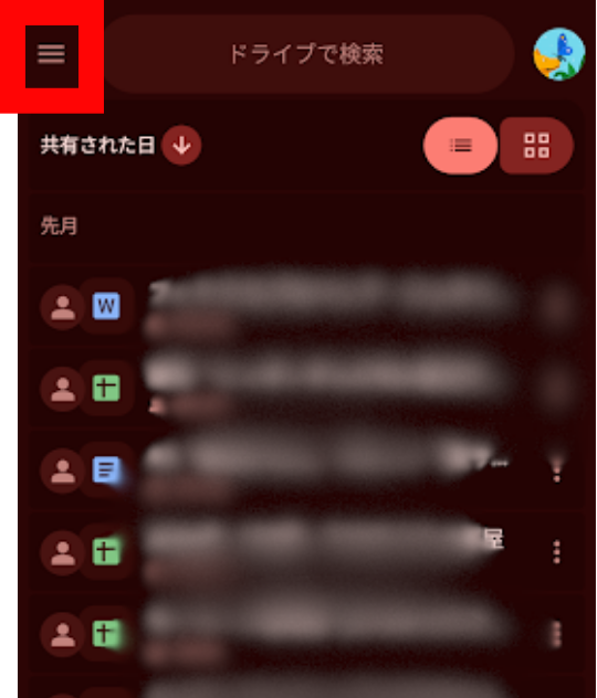 1.Googleドライブアプリを開き、画面左上の「≡」をタップします。