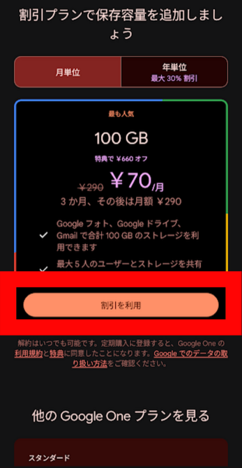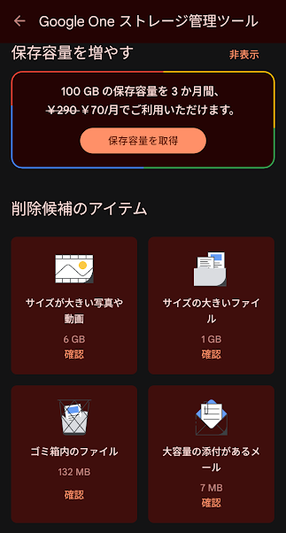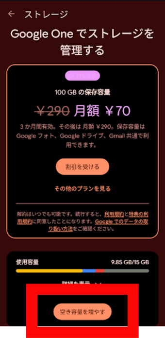 それでも容量が足りない場合は、Google Oneで容量を追加することを検討しましょう。
