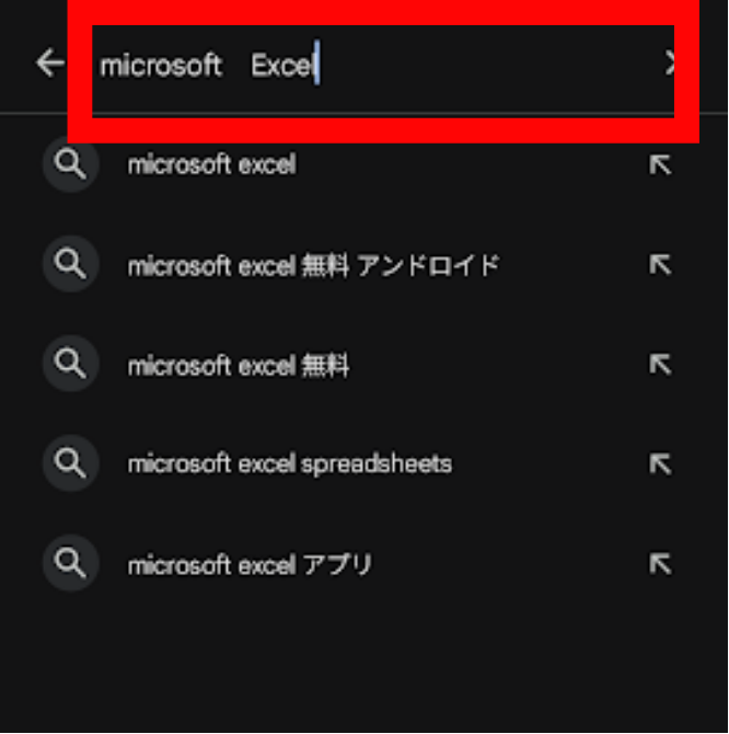 1.Google Playストアで「Microsoft Excel」と検索します。