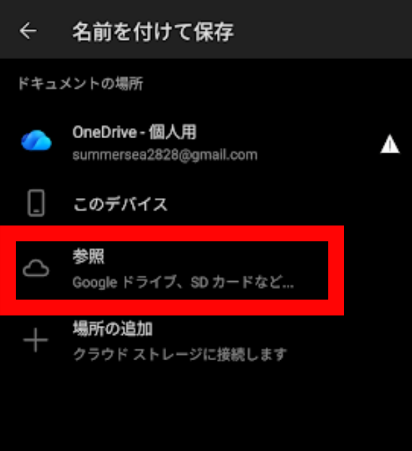 Wordアプリ・Excelアプリで編集したファイルは、アプリ内の「名前を付けて保存」からGoogleドライブに保存できます。