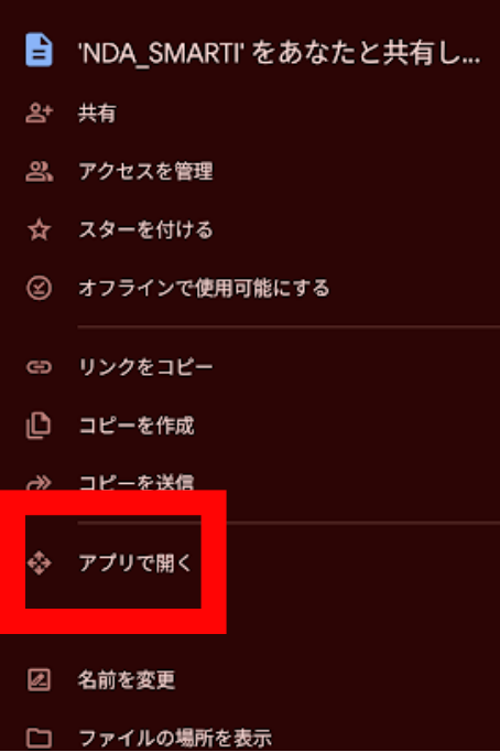 - Googleドライブでファイルの「︙」→「アプリで開く」をタップする