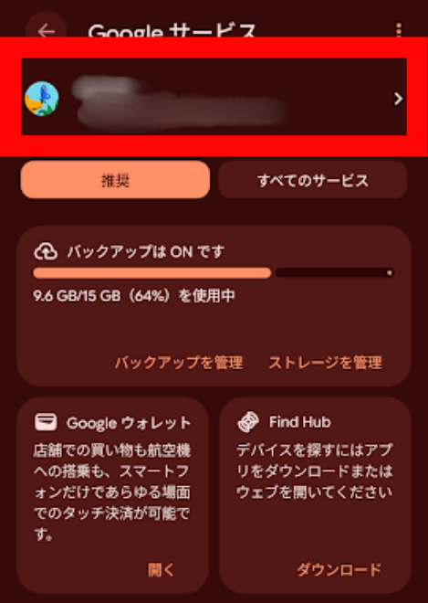 - バックアップ先のGoogleアカウントを確認する