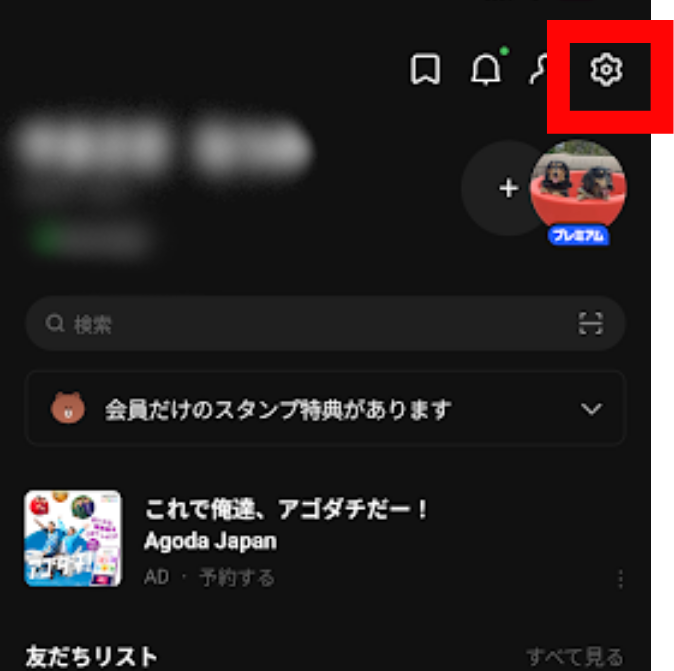 右上の「設定(歯車アイコン)」をタップします。