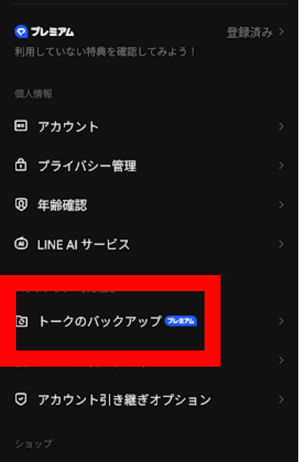 「トークのバックアップ」をタップします。