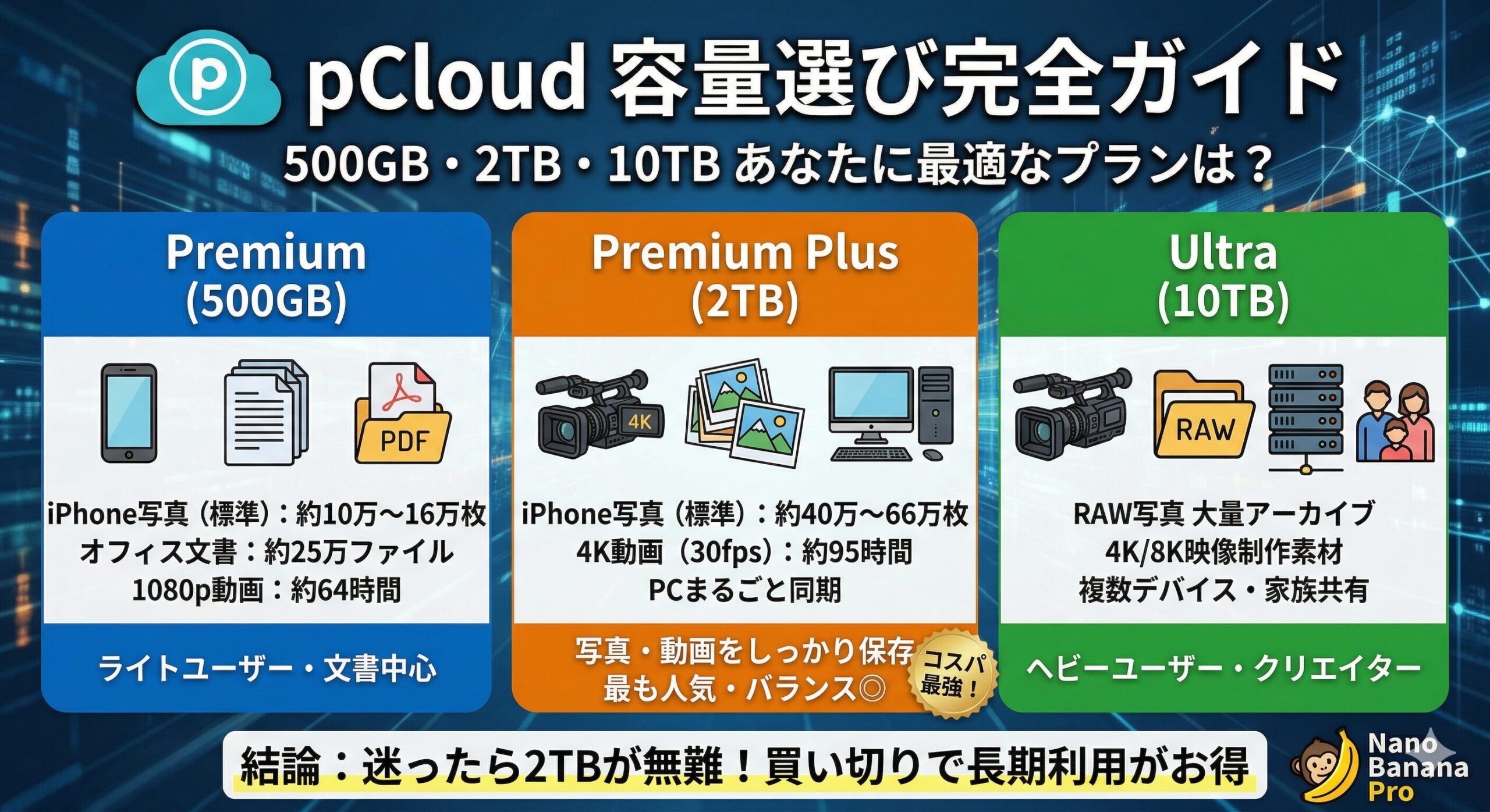 pCloudの容量はどれを選ぶべき?500GB・2TB・10TBを使用目安から徹底比較