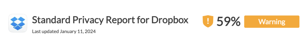 教育分野のプライバシー評価機関「Common Sense Privacy」は、Dropboxに対して「Warning(警告)」評価を下しています。その主な理由として、広告目的でのユーザー追跡や、サードパーティへのデータ共有が挙げられています。