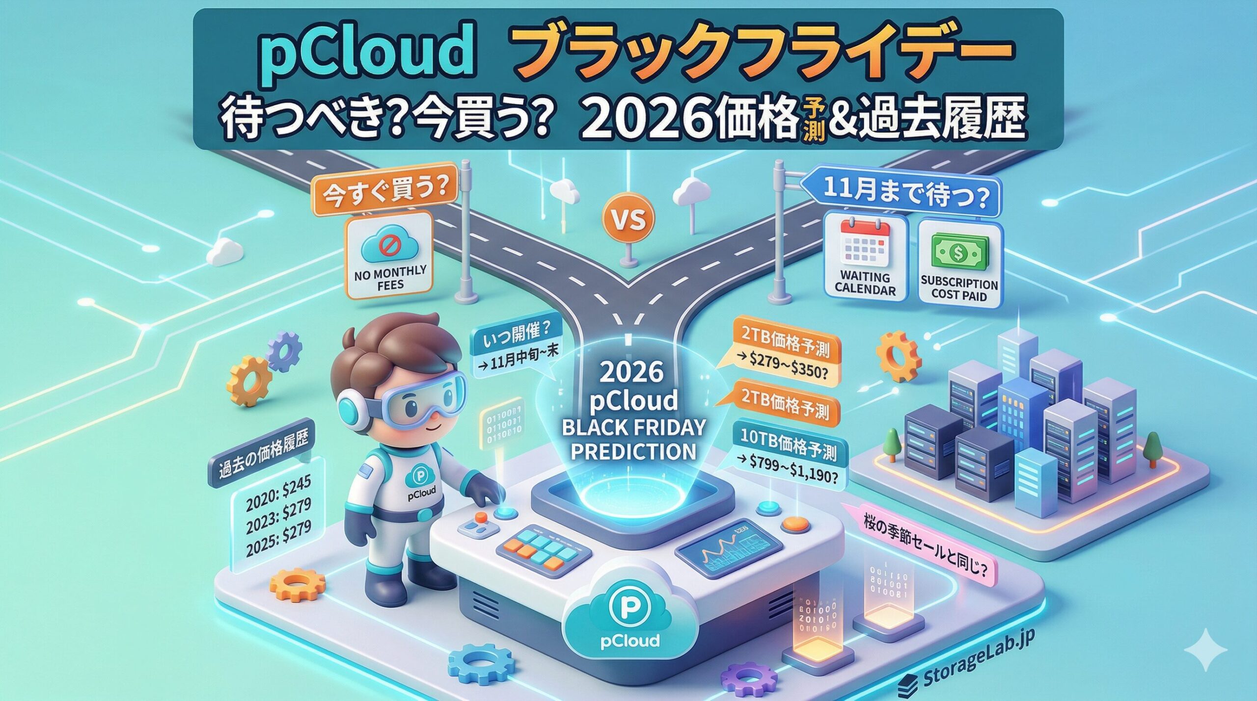 過去の実績から、pCloudのBlack Friday セールは本番の1〜2週間前から始まることが多いです。2026年は11月中旬〜11月末の開催が予測されます。