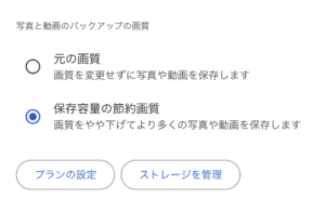 今後撮る写真が「元の画質」でバックアップされないよう設定を変更します。一度設定すれば以降は自動で圧縮保存されます。