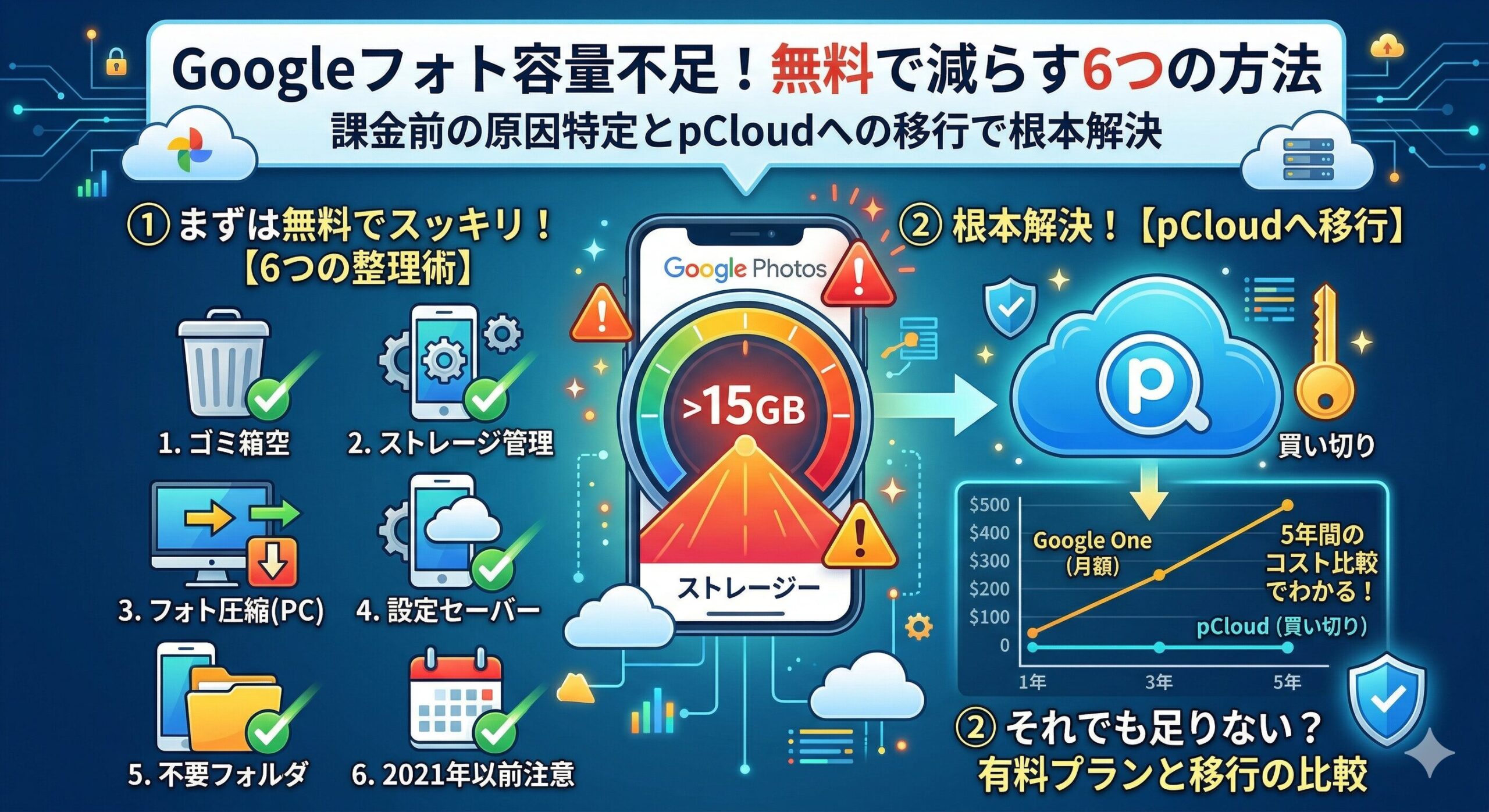 Googleドライブの容量がいっぱい?無料で減らす7つの方法と乗り換え先【2026年】