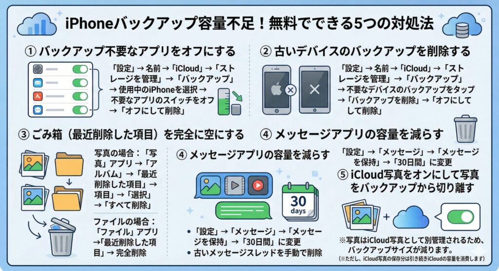 👉 関連記事:iCloudの容量がいっぱいになったら?無料で減らす7つの方法【2026年】