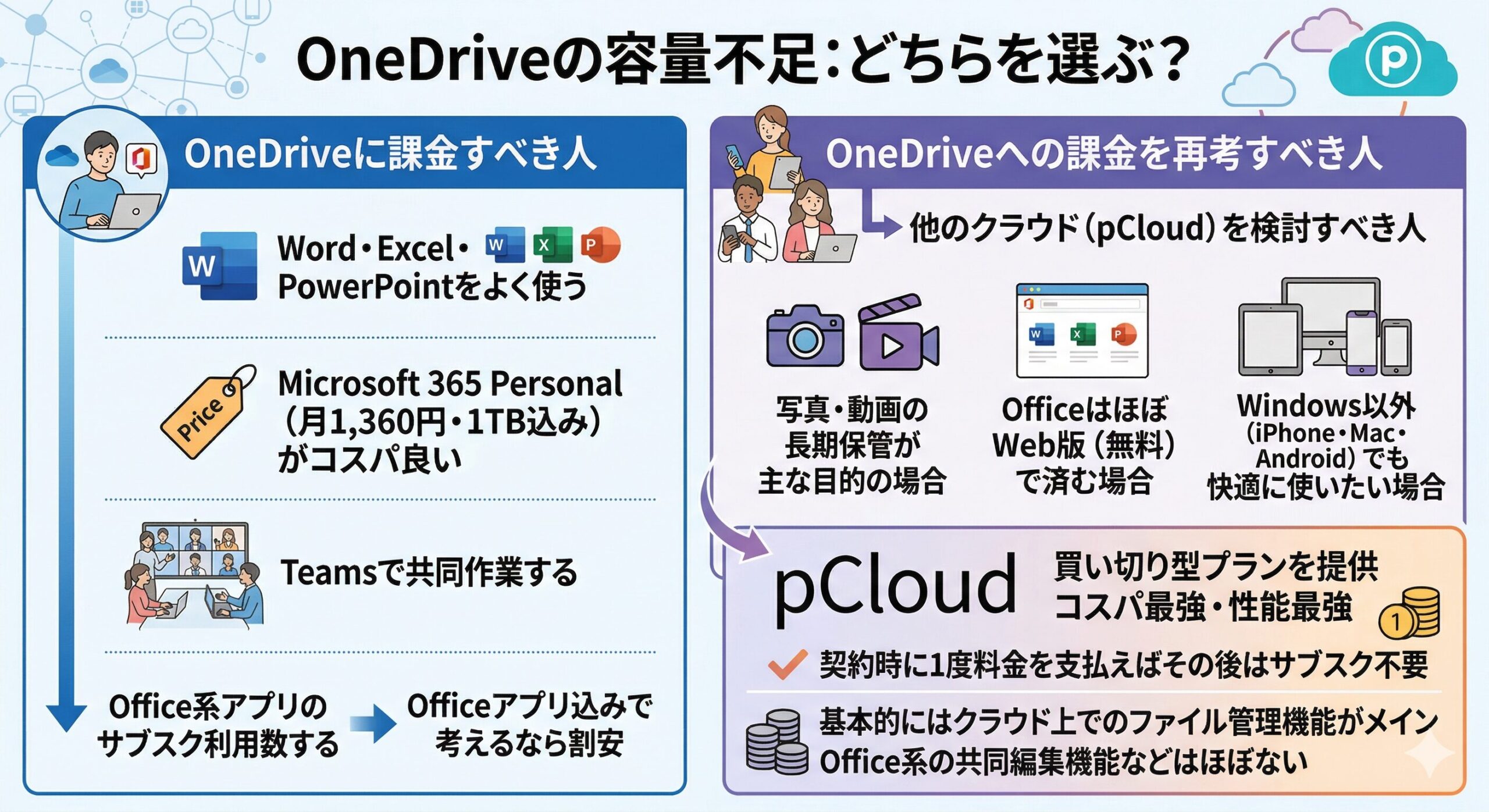整理してもまだ足りない場合:Microsoft 365 vs pCloud