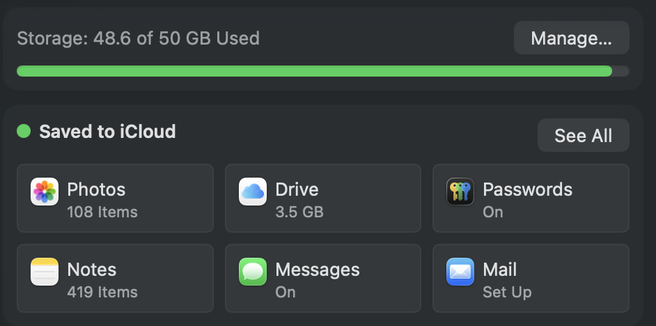これらの機能はすべてiCloudという同じストレージを共有しています。無料では5GBが上限で、写真・バックアップ・ドライブ・メールが合算されます。