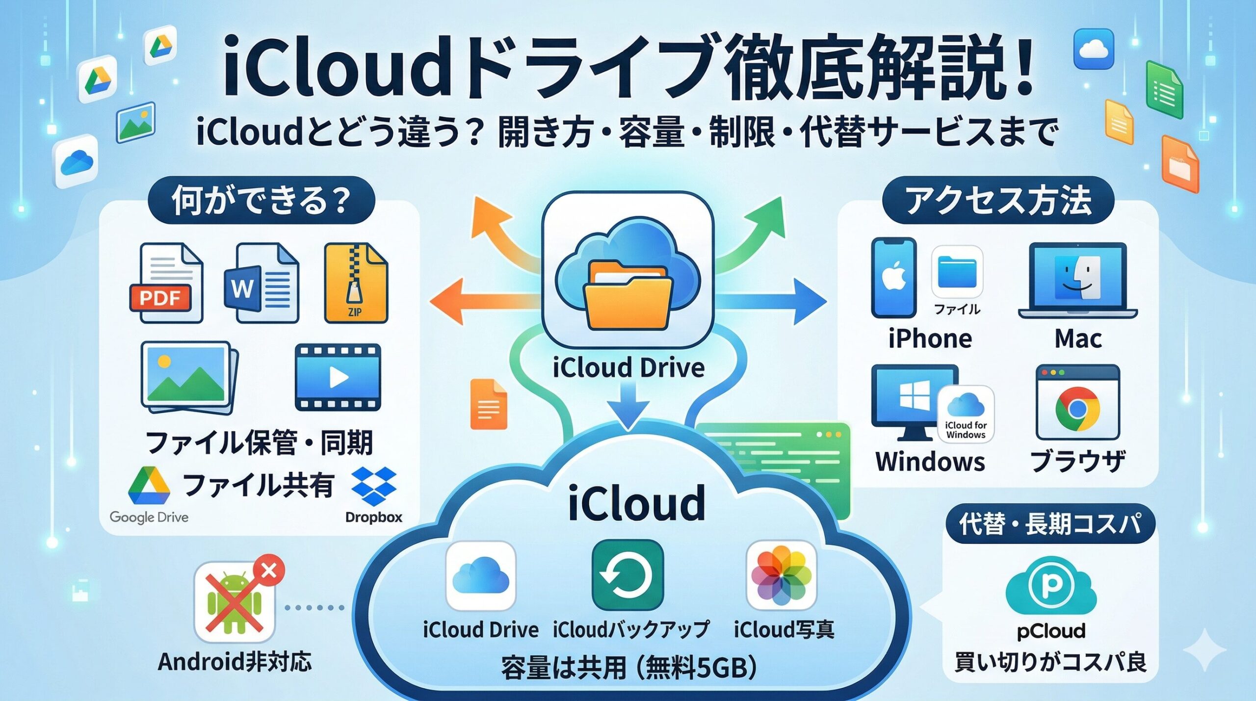 iCloudドライブはGoogleドライブの代わりになる?