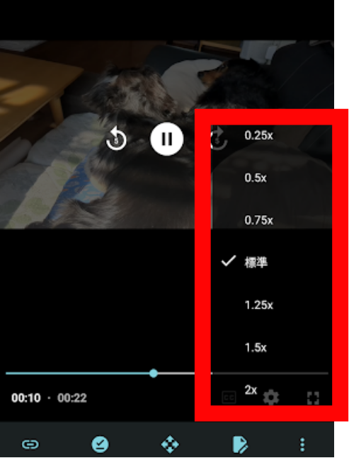 - 倍速再生の設定方法(0.5倍〜2倍速)