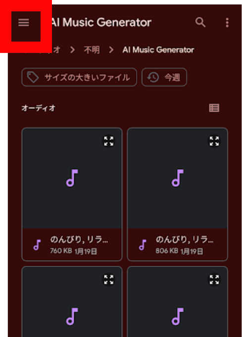 2.画面左上のメニューアイコン(三本線)をタップします。