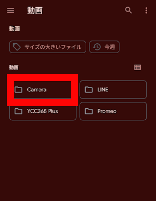 6.ここでは「camera」ですが、動画がLINEで送られてきたものなら「LINE」、アプリで作成したものなら該当のアプリを選択します。