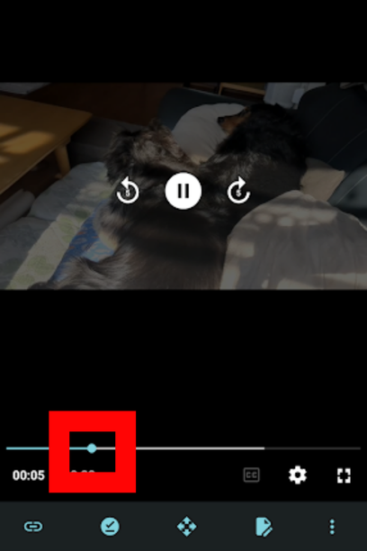 ・シークバー: 動画の再生位置を変更(左右にドラッグ)