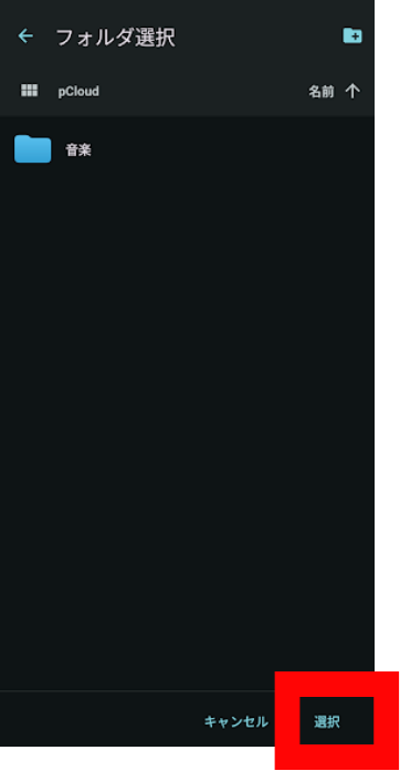 7.フォルダに入れたい場合はここでフォルダを選択しますが、特に入れない場合は下の「選択」をタップするとアップロードが開始されます。
