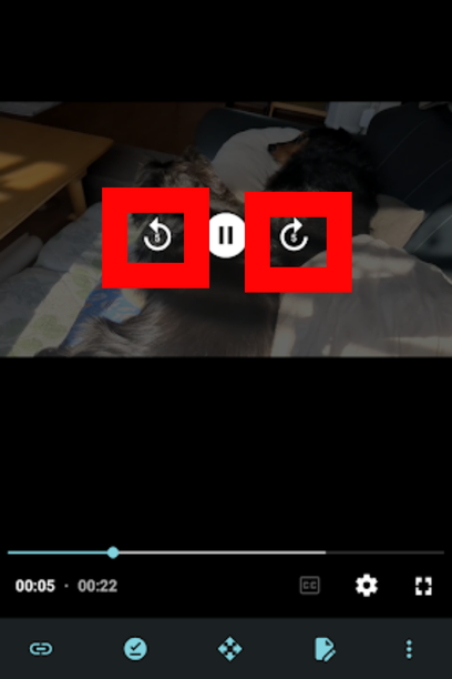 ・5秒戻る/5秒進むボタン: 素早く前後に移動