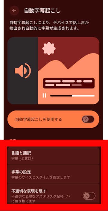 外部字幕ファイル(SRT、VTT)を読み込んで表示できます。海外の動画や、自分で字幕を用意した動画を楽しめます。