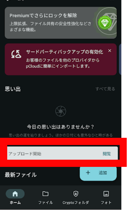 まず、動画ファイルをpCloudにアップロードしましょう。