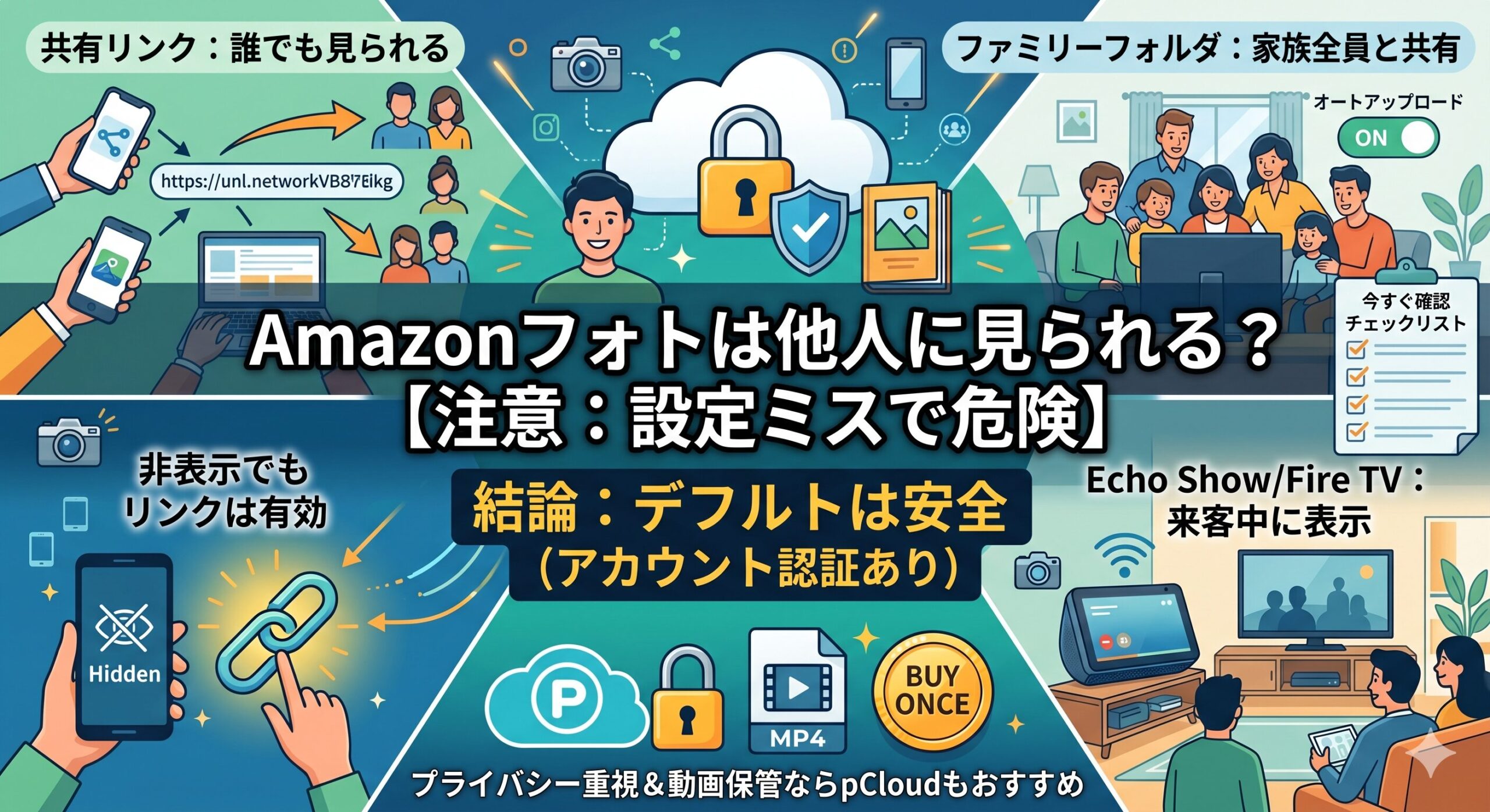 ここまで読んでいただくとわかるように、Amazonフォトのプライバシーリスクの大部分は「設定ミス」や「操作の誤り」によるものです。サービス自体がデータを外部に公開しているわけではありません。